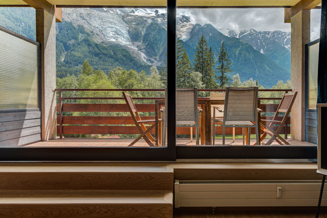 – Grande terrasse avec sièges extérieurs et vue imprenable sur le Mont-Blanc