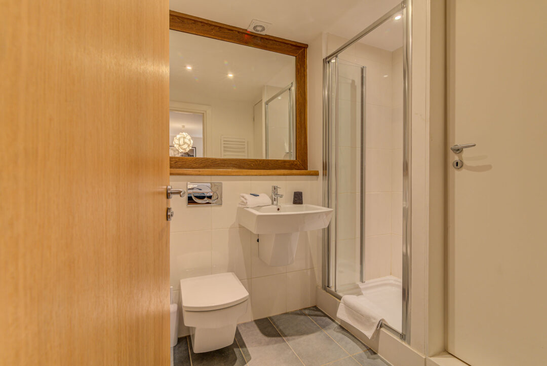 L’appartement est situé au rez-de-chaussée et dispose d’une entrée privée. Il comprend un salon/salle à manger/cuisine ouvert avec une table à manger, un canapé-lit, une télévision et un lecteur DVD. La cuisine est entièrement équipée avec un réfrigérateur-congélateur, un four, une cuisinière, un micro-ondes et une machine à café. Il y a 2 chambres et 2 salles de bains. La chambre 1 est une chambre double avec une salle de douche attenante comprenant un lavabo, des toilettes et une douche. La deuxième chambre est une chambre à deux lits avec deux lits simples. La deuxième salle de bains est accessible depuis le couloir et dispose d’une douche au-dessus de la baignoire, d’un lavabo et de toilettes. À l’extérieur, il y a une place de parking réservée juste en face de l’appartement et un accès à une terrasse commune et à une buanderie avec lave-linge/sèche-linge.