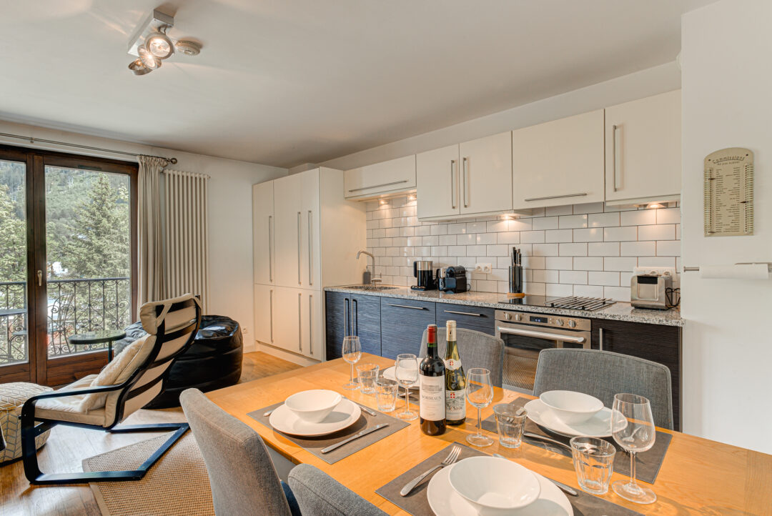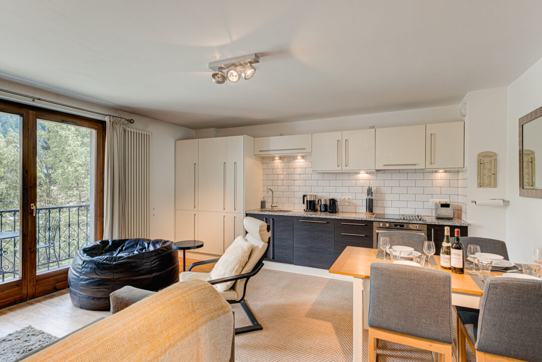 L’appartement Cosmiques est un appartement moderne de deux chambres et deux salles de bains, pouvant accueillir confortablement quatre personnes. L’appartement bénéficie d’un emplacement idéal dans le centre piétonnier de Chamonix, avec toutes les commodités que la ville de Chamonix a à offrir juste à votre porte. Doté d’un confortable salon/salle à manger/cuisine et d’un balcon donnant sur la rivière, l’appartement Cosmiques est un excellent endroit pour se détendre après une journée à la montagne, tout en étant à quelques minutes de l’animation du centre de Chamonix.