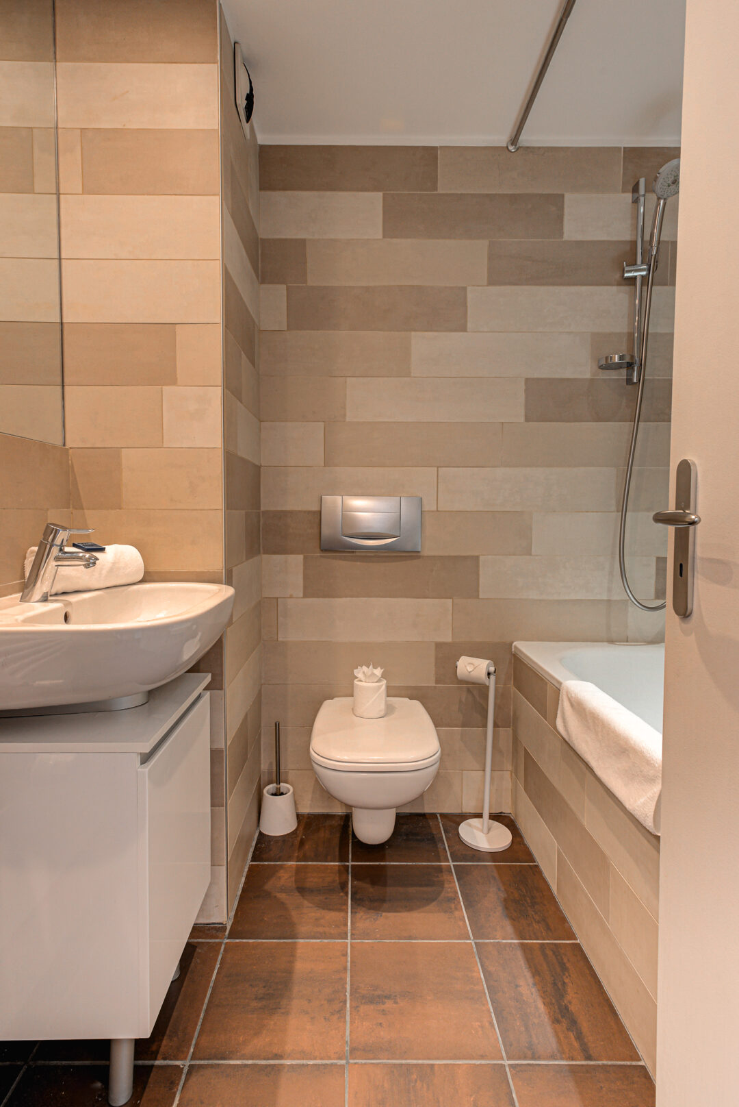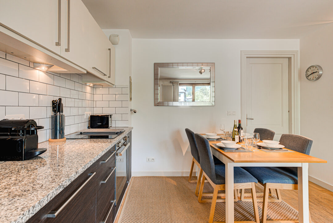 L’appartement est situé au 2ème étage d’un immeuble d’appartements avec ascenseur. Il comprend un salon/salle à manger/cuisine ouvert avec un canapé, des fauteuils, une télévision et une grande table à manger. La cuisine moderne est entièrement équipée avec un réfrigérateur-congélateur, un four, une cuisinière, un four à micro-ondes et une machine à café. En outre, il y a une buanderie avec une machine à laver/sèche-linge. Il y a une chambre double avec un lit double et une deuxième chambre avec des lits jumeaux. Il y a 2 salles de bain, chacune avec un WC et un lavabo, une avec une douche et une avec une douche sur une baignoire. Il y a un balcon donnant sur la rivière avec une table et des chaises. Il y a une place de parking désignée dans le parking souterrain et un casier à skis désigné dans le sous-sol du complexe d’appartements.