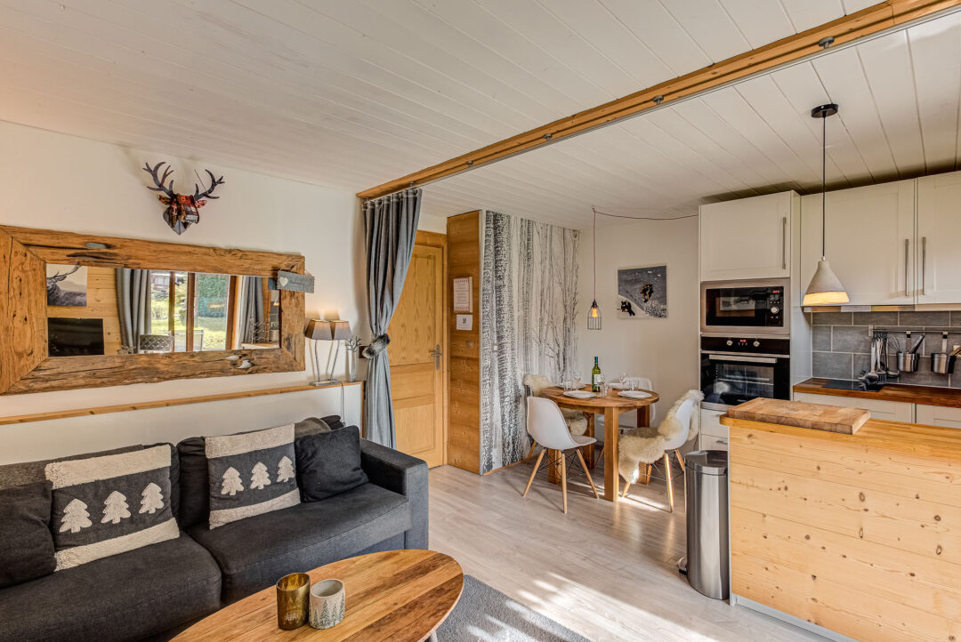 L’appartement Cry est situé au rez-de-chaussée d’une petite résidence. Cet appartement de location de Chamonix est composé d’un salon/salle à manger ouvert et d’une cuisine moderne entièrement équipée. Il y a un canapé-lit, et le salon donne sur une terrasse privée avec des meubles pour manger dehors et un grand jardin partagé. La chambre à coucher est équipée d’un lit double qui peut également être installé comme deux lits jumeaux, de nombreux rangements et donne également sur la terrasse ensoleillée. Entre le salon et la chambre, il y a une salle de douche élégante avec une douche moderne, des toilettes et un lavabo. Un parking souterrain pour une voiture et un casier à skis complètent cette propriété.