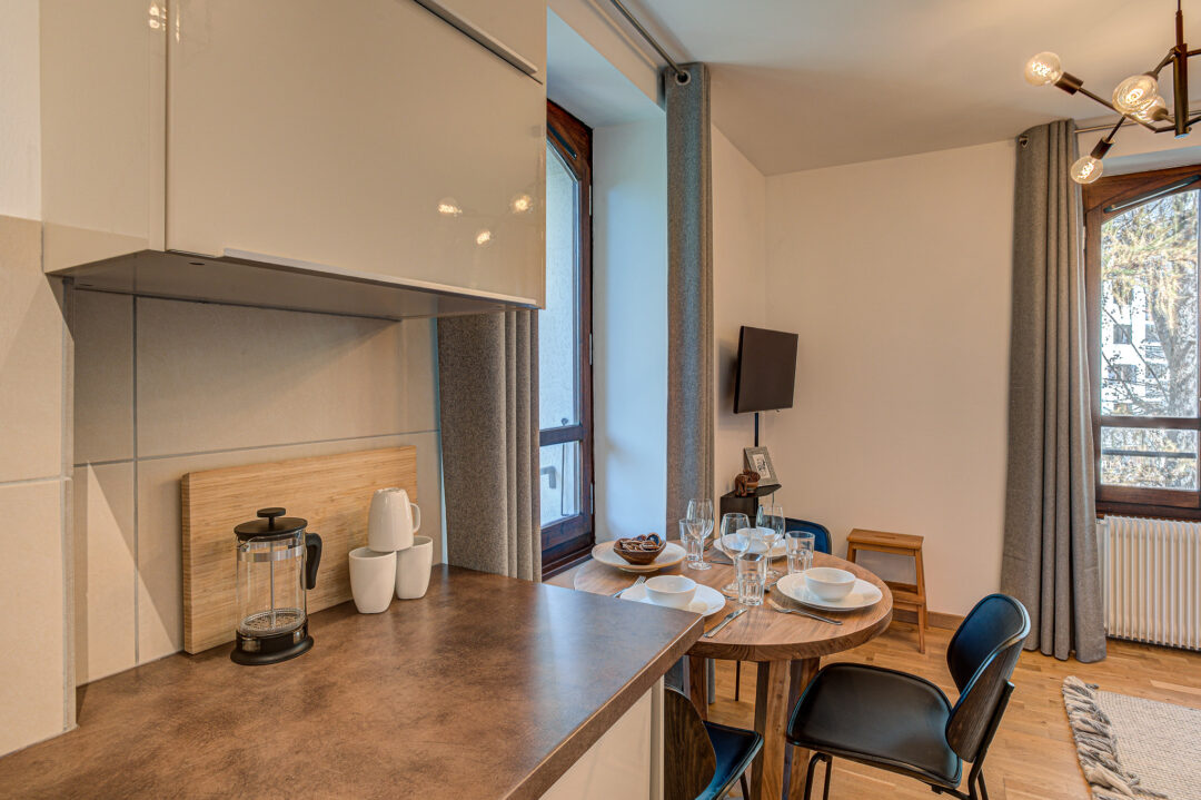 La Roseraie est un appartement soigné d’une chambre et d’une salle de bains pouvant accueillir jusqu’à 3 personnes. Situé au centre de Chamonix, dans un charmant immeuble résidentiel entouré de jardins ouverts, il se trouve à quelques minutes de marche de l’Aiguille du Midi et de l’arrêt de bus principal, ce qui permet d’accéder facilement aux domaines skiables de Chamonix. L’appartement est lumineux et aéré et est entièrement équipé de toutes les commodités modernes pour assurer un séjour relaxant et confortable.
