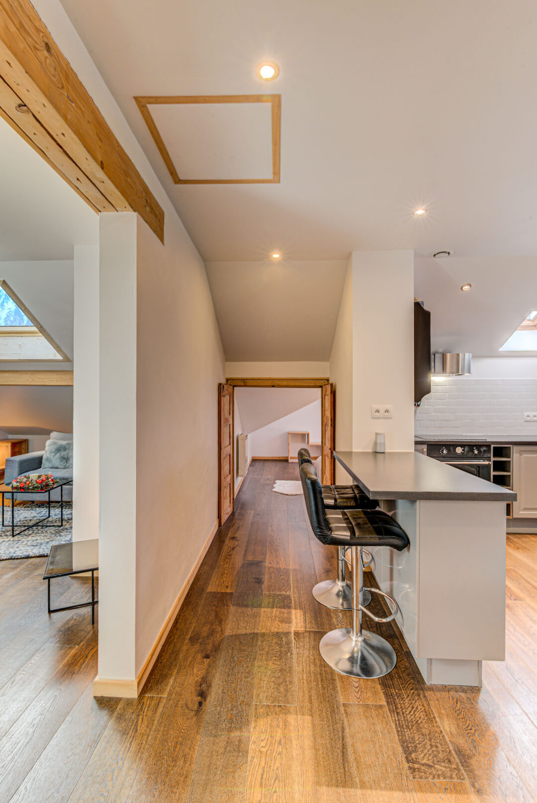 L’appartement Rebats est un appartement moderne situé dans les combles d’une maison de ville près du centre de Chamonix. Récemment rénové et meublé avec style, il comprend deux chambres à coucher et une salle de bains, et peut accueillir jusqu’à 4 personnes. La spacieuse chambre principale s’ouvre sur un balcon ensoleillé, d’où vous pourrez profiter de vues incroyables sur le massif du Mont Blanc. La deuxième chambre a des plafonds bas et est plus adaptée aux enfants. L’espace de vie confortable fait de l’appartement Rebats un endroit idéal pour se détendre après une journée à la montagne.