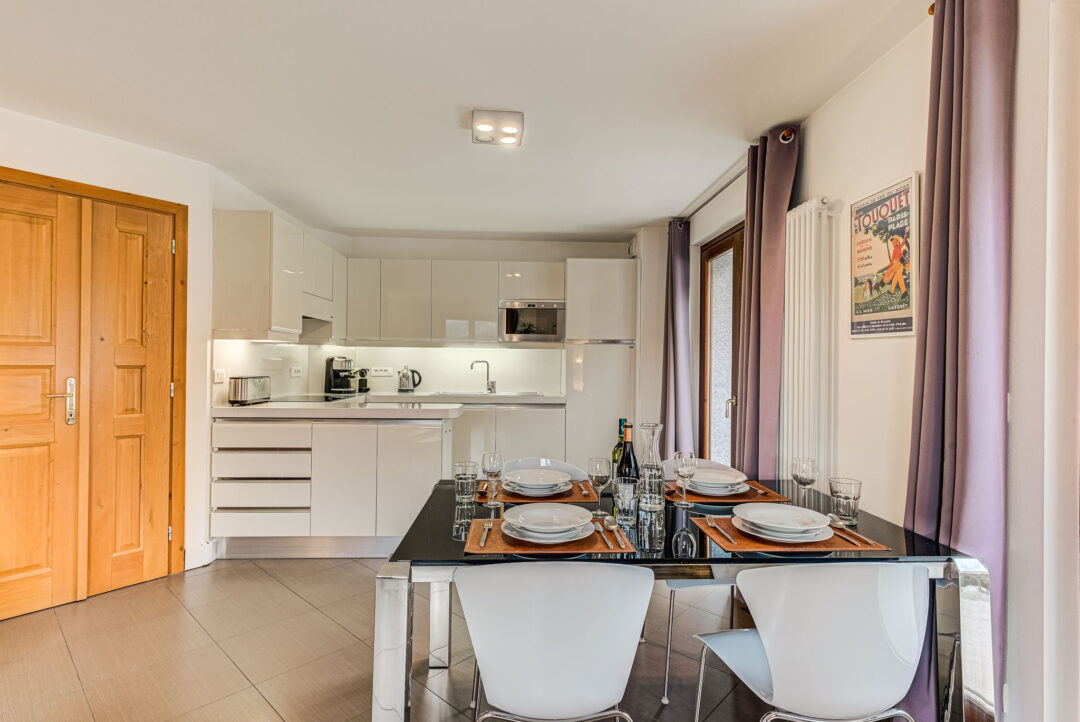 Welcome to Alpes IV– a spacious two bedroom apartment in the heart of Chamonix. This south facing property is located on the third floor of a quality central building and has a lift for easy access. The apartment strikes the right balance between urban life and mountain tranquility. The open-plan design seamlessly integrates the kitchen, living room, and dining room, offering a comfortable space to relax.