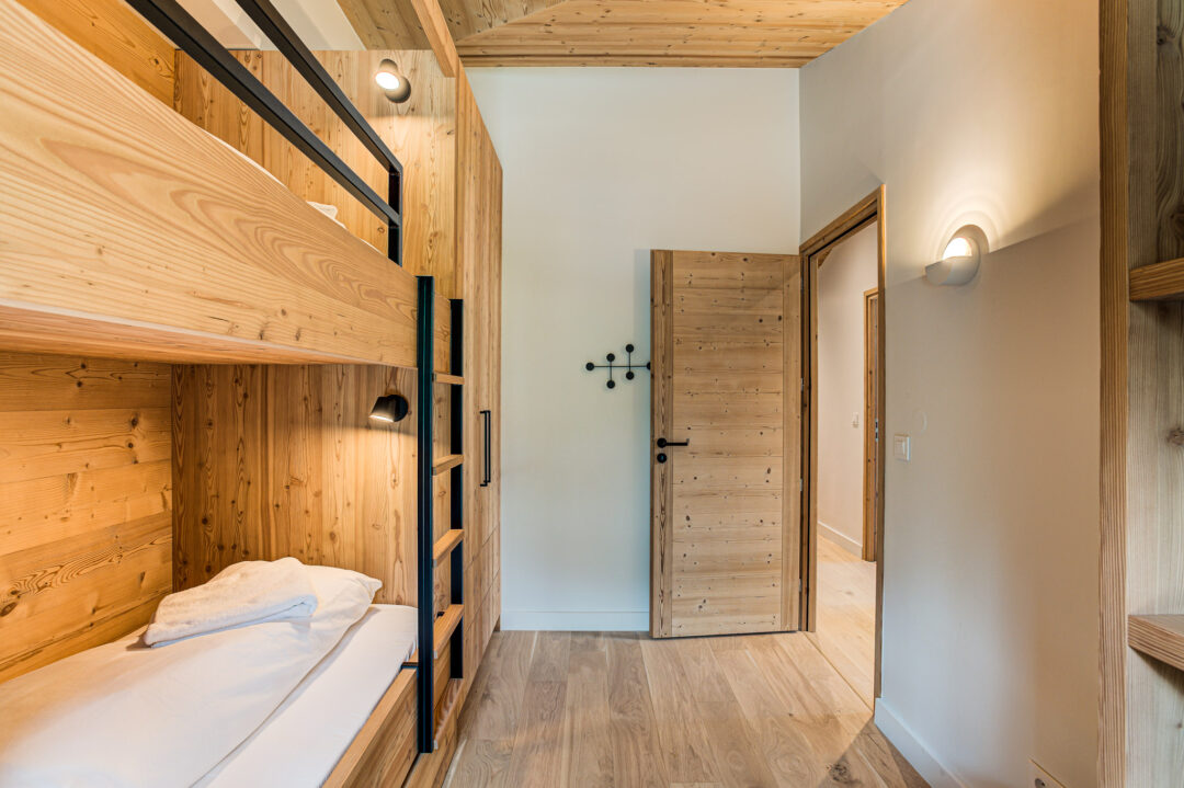 Apartment Castorettes features a generous kitchen/living/dining area designed for comfort and style. The master double bedroom includes an ensuite bathroom, while the second double bedroom offers a peaceful retreat. The bunk room features a third pull-out bed, making it ideal for children or friends travelling together. A separate family bathroom is located off the main hallway.