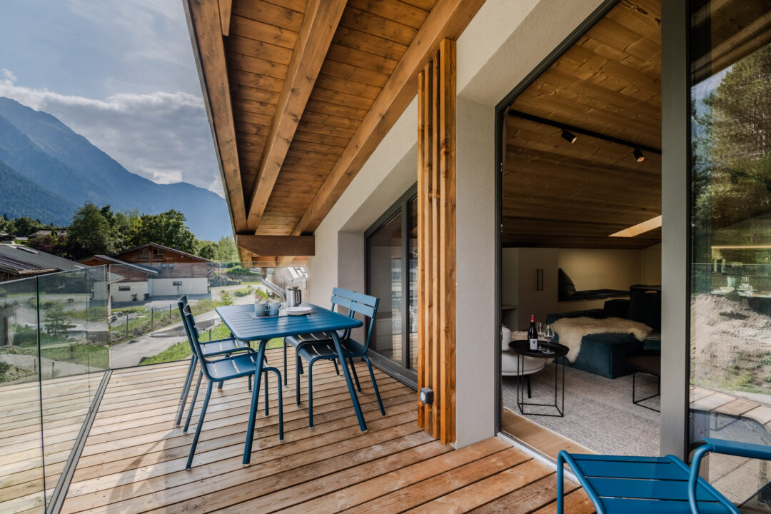 From the living area, step directly onto the private balcony and enjoy serene mountain views – perfect for morning coffee or evening drinks after a day of exploring.