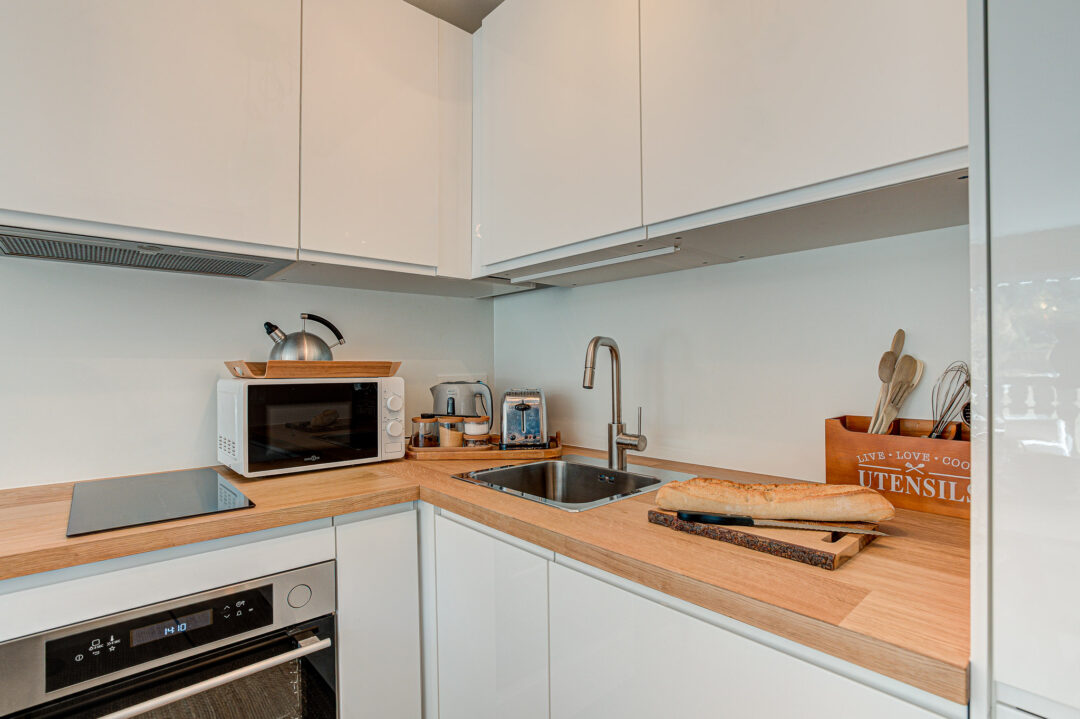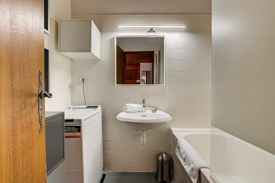 The open-plan living and dining area opens onto a large balcony overlooking the Savoy slopes, the perfect spot to relax in the afternoon and evening sun while taking in the mountain scenery. The newly fitted modern kitchen is fully equipped for self-catering stays, and the apartment has been freshly redecorated throughout to create a bright, comfortable space.