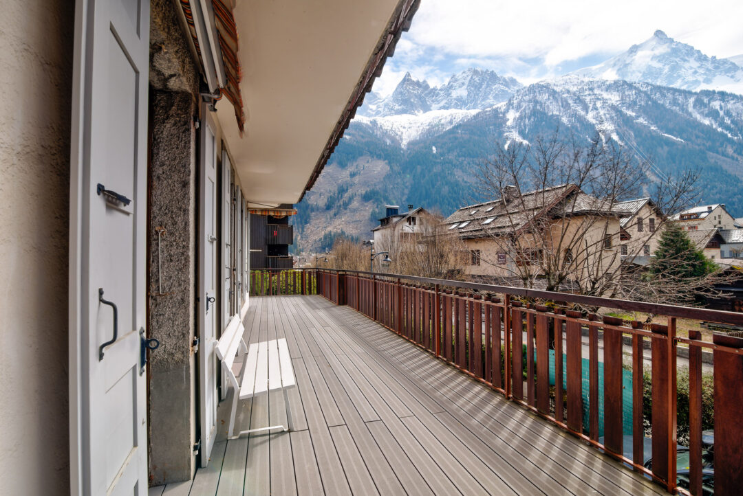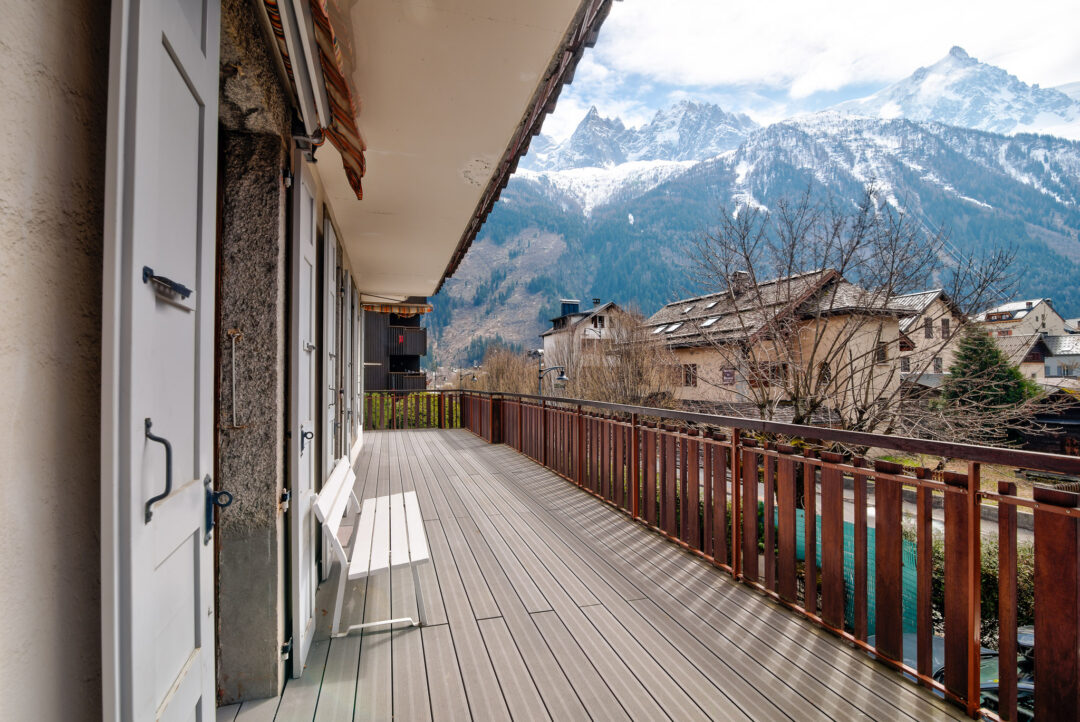 Apartment President is a spacious five bedroom, five bathroom apartment sleeping 12 in the centre of Chamonix. The huge, sunny terrace with spectacular Mont Blanc views is a unique feature for such a central apartment and makes an excellent space to relax or enjoy an al fresco meal. Inside, the comfy lounge and large dining table make Apartment President a great social space. The perfect apartment for groups looking to enjoy each other’s company with a convenient central location.