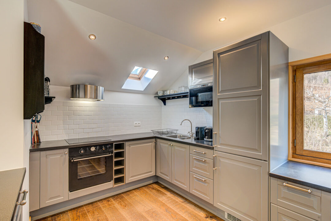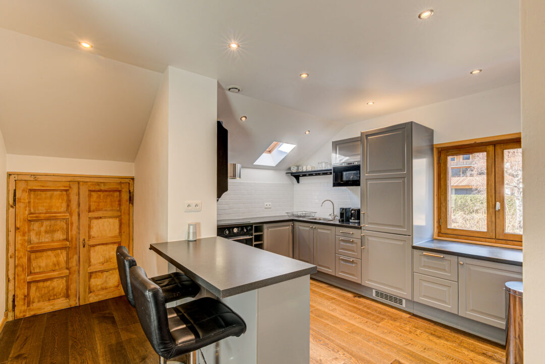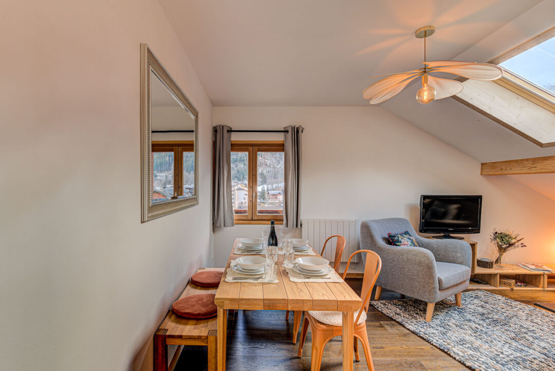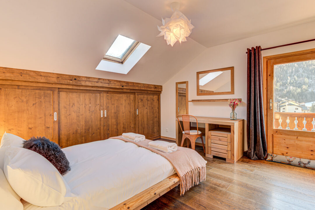 Apartment Rebats is a modern apartment located in the eaves of a town house close to the centre of Chamonix. Recently renovated and stylishly furnished it comprises two bedrooms, one bathroom, sleeping up to 4 guests. The spacious master bedroom opens onto a sunny balcony, where you can enjoy incredible views of Mont Blanc. The second bedroom has low ceilings and is best suited to children. The cosy living space makes Apartment Rebats a great place to relax after a day in the mountains.