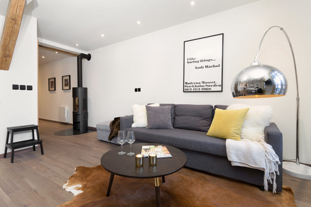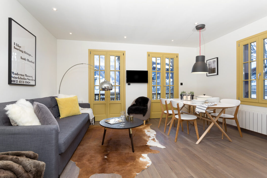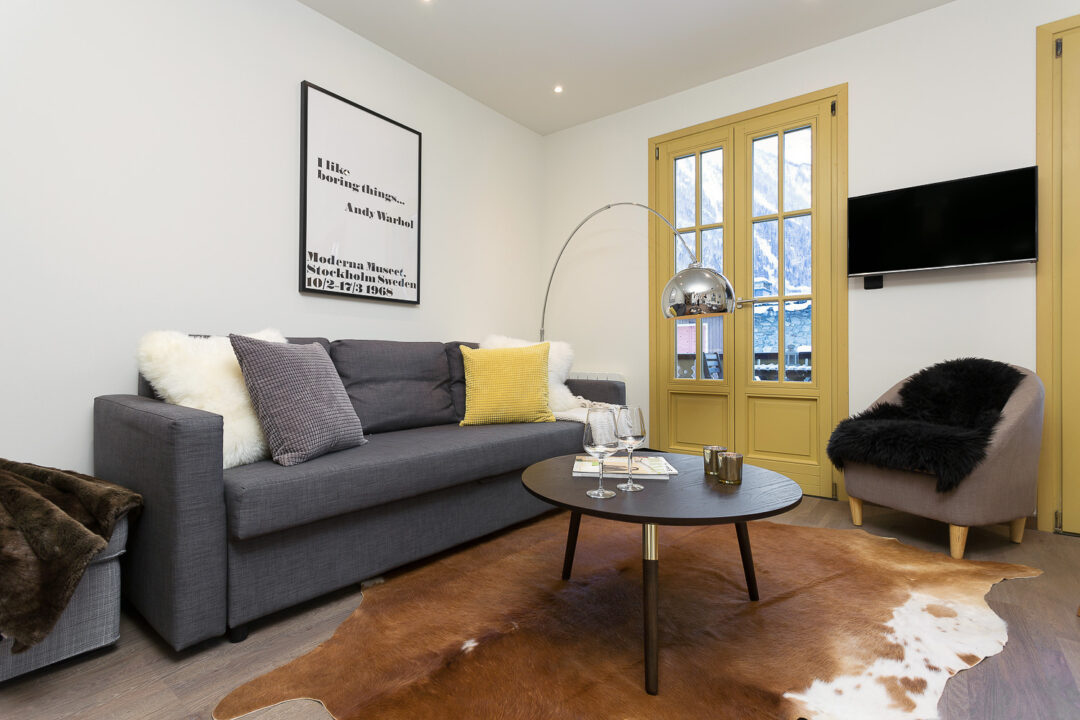 Apartment Chalet Suisse is a modern apartment located in ‘The Old Library’ a unique, historical building in Chamonix. Recently renovated and stylishly furnished it comprises two bedrooms, one bathroom and a living room sofa bed, sleeping up to 6 guests. From the bright, open plan living space, which opens up onto a sunny balcony, you can enjoy incredible views of the Mont Blanc Massif. The addition of a wood burning stove makes Chalet Suisse a great place to relax after a day in the mountains.