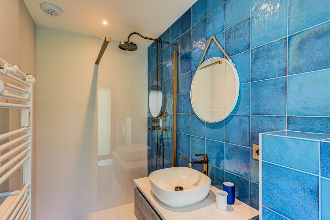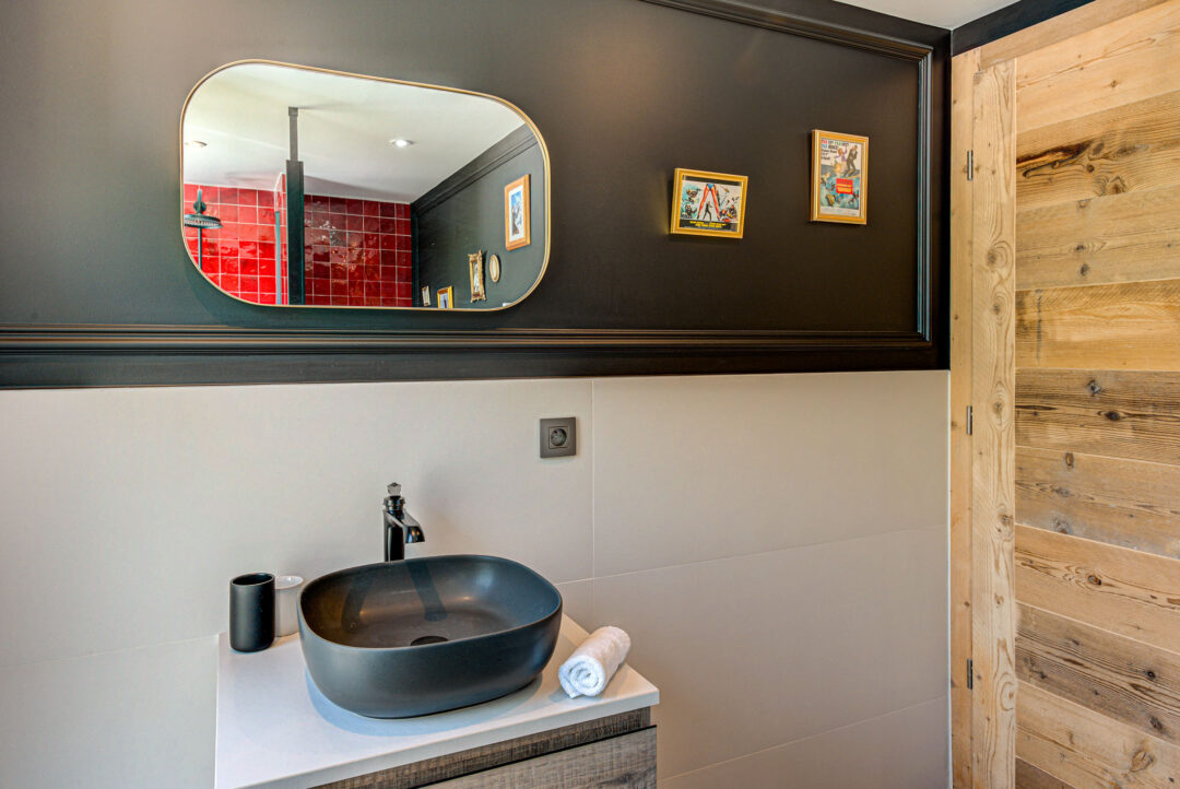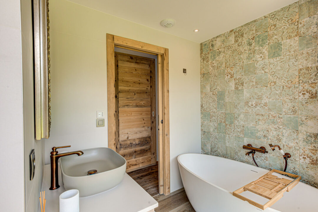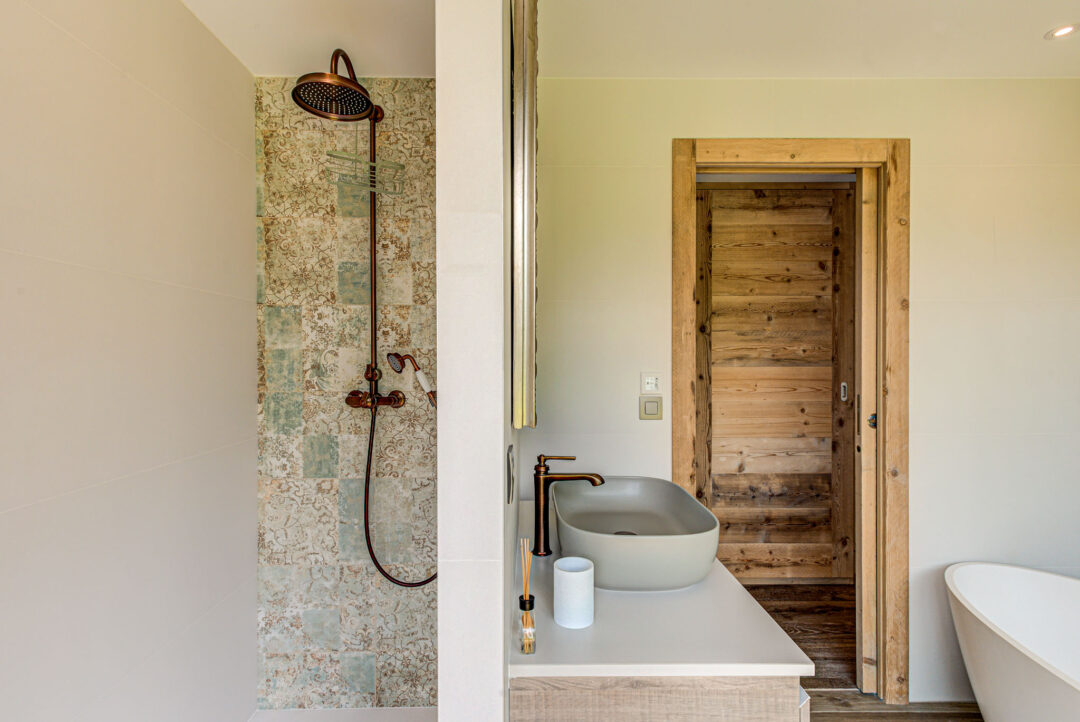 The ground floor hosts three spacious bedrooms, each with its own ensuite bathroom. All bedrooms are configured as doubles. Two of the bedrooms offer direct access to the garden and ensuite bathrooms with stunning alpine views—perfect for soaking in a sunset bath after a mountain adventure.